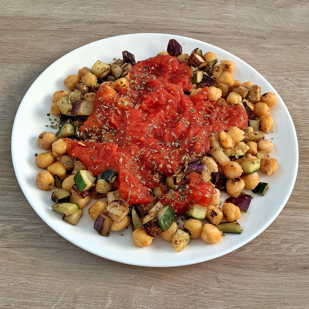 Garbanzos con calabacín y berenjenas
