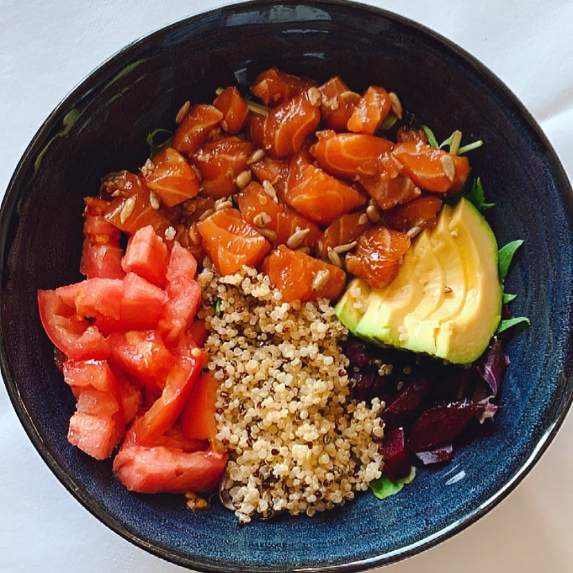 Descubre la frescura del poke de salmón, un combinación pescado, quinoa y vegetales variados en un festín de sabor, textura y salud. ¡Pruébalo, está delicioso!