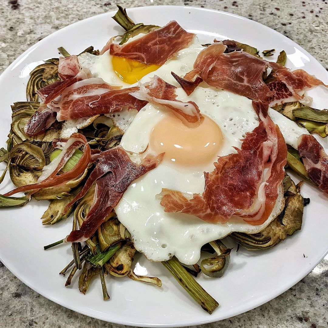 Saborea la mezcla de alcachofas con huevo y jamón. Una cena fácil, deliciosa y rápida de preparar. Te encantará el sabor de la alcachofa potenciado con el jamón