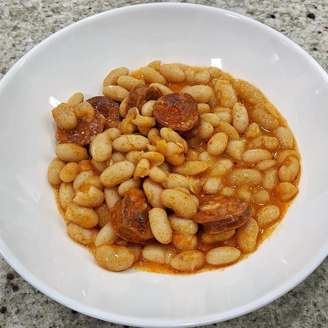 Alubias con chorizo, un plato tradicional español y reconfortante. Perfecto para saborear la esencia de la cocina casera. Tiempo extra: remojo de 12-20 horas. Tiempo extra: remojo de 12-20 horas