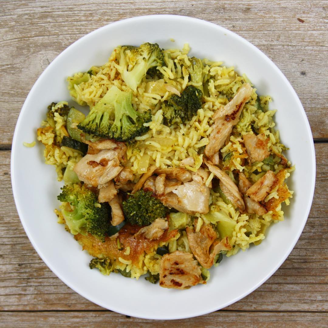 Arroz con verduras y heura