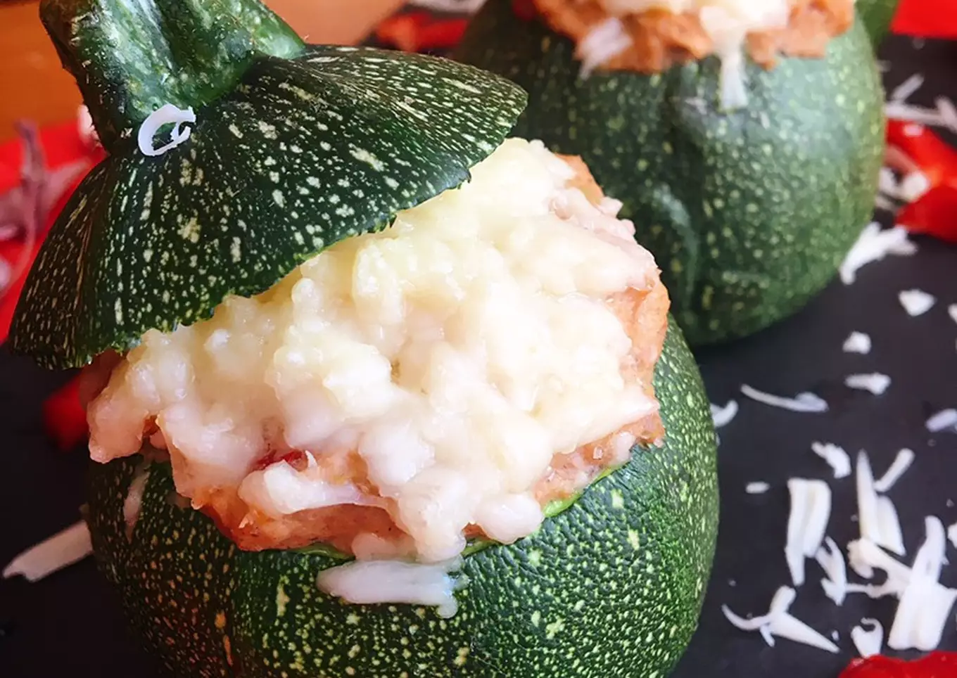 Calabacines luna rellenos de atún y pimiento rojo