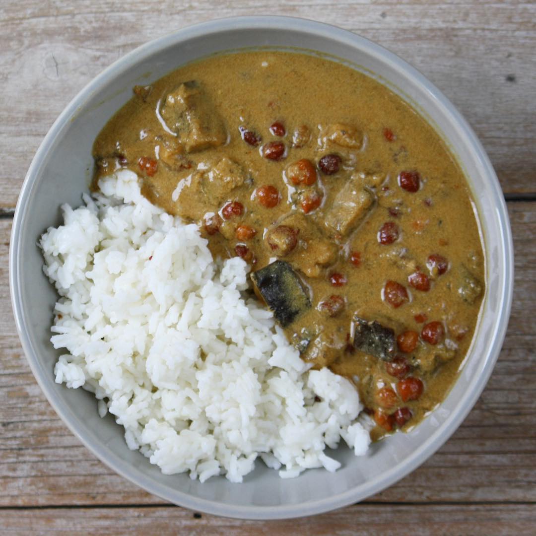 Curry de garbanzos con arroz, una combinación perfecta de sabores intensos y texturas reconfortantes. Un plato que te transportará. Tiempo extra: 10 horas.