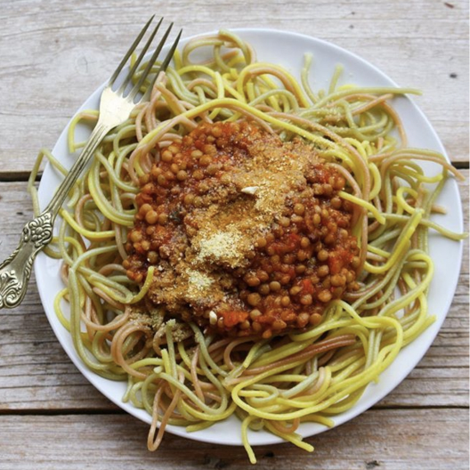 Prueba unos espaguetis con boloñesa de lentejas, una deliciosa alternativa vegetariana al tradicional plato italiano. Disfruta de una comida reconfortante.