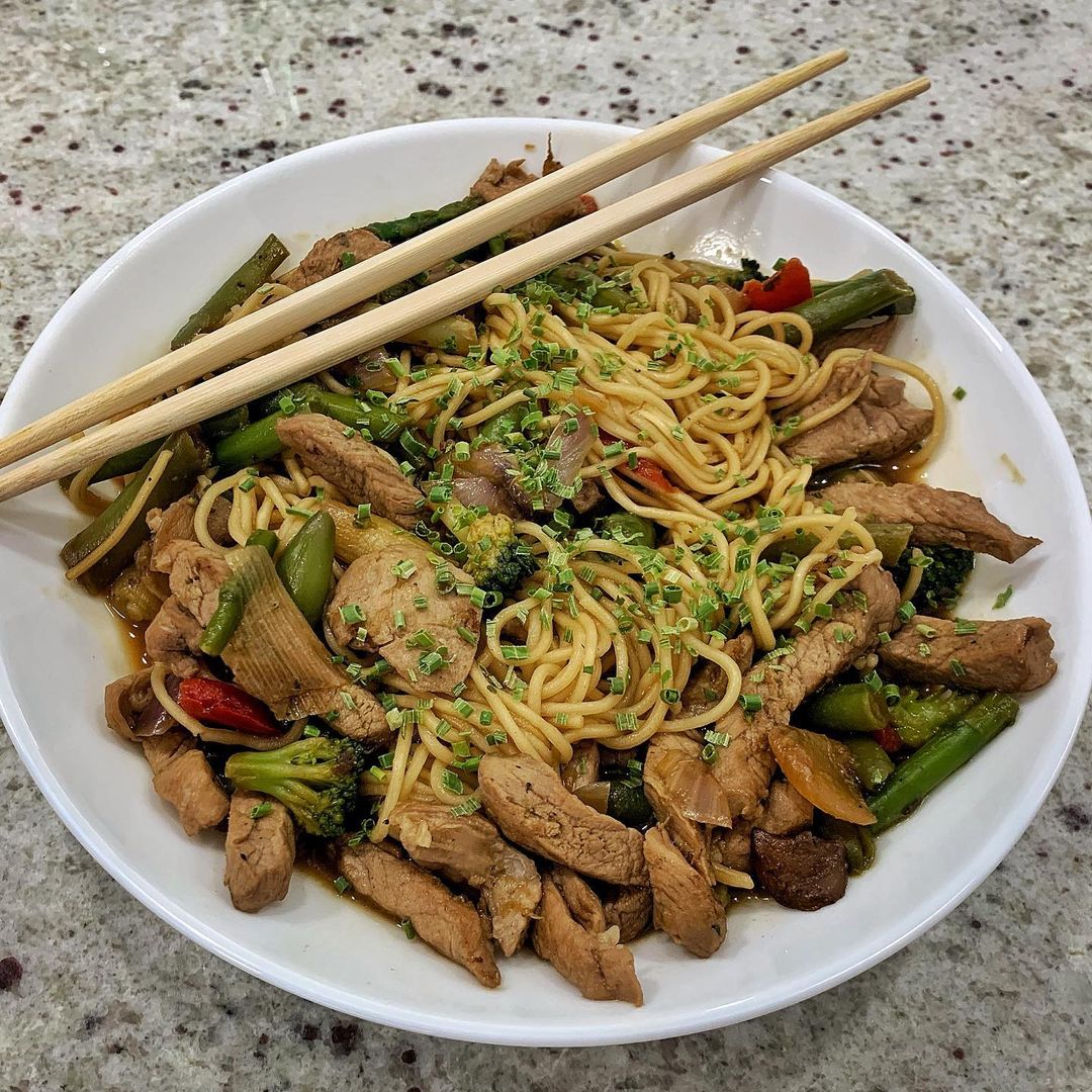 Embárcate en un viaje culinario con fideos chinos con solomillo y verduras. La fusión perfecta de Oriente y Occidente en tu plato. Sabor, textura y salud en uno