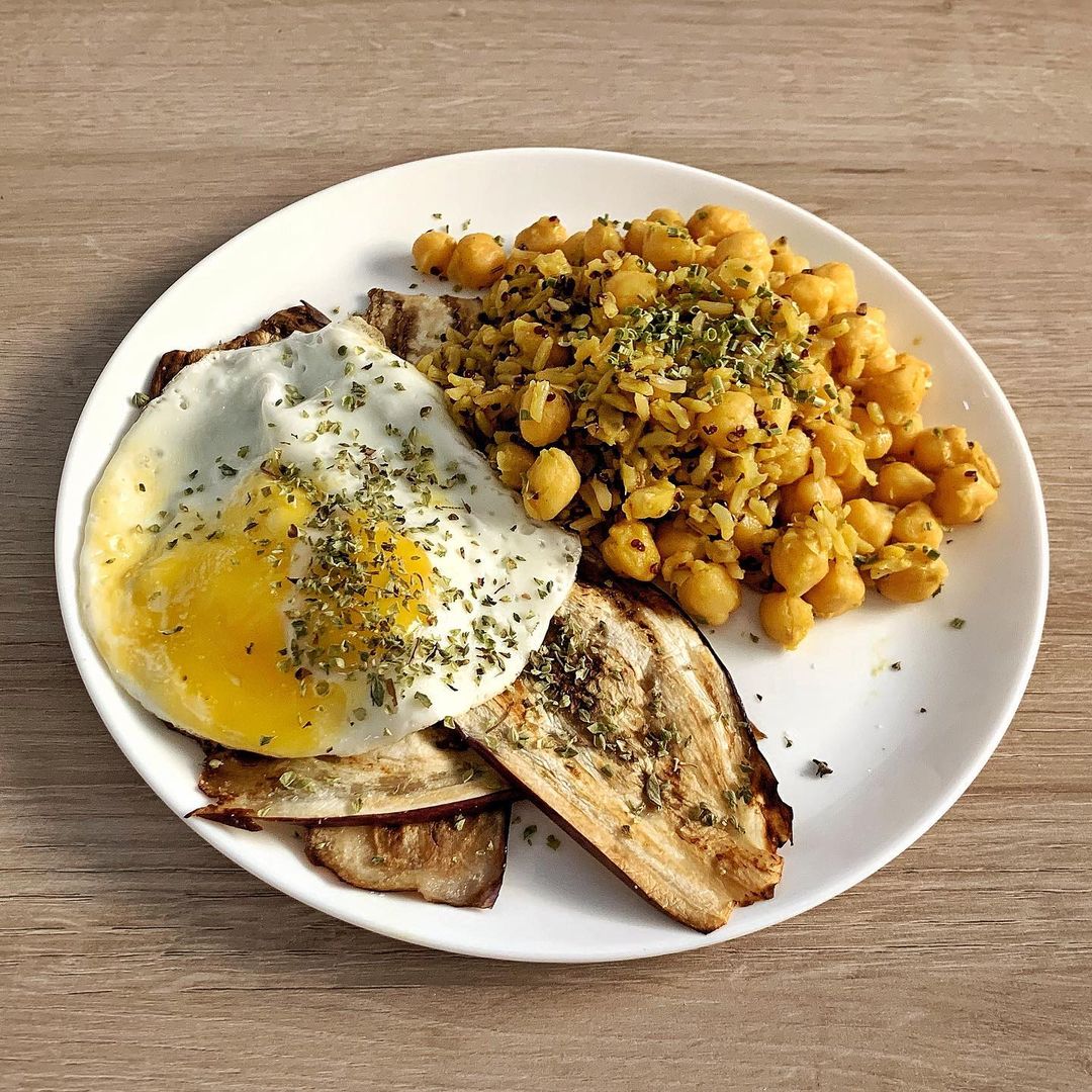 Garbanzos con huevo y berenjenas. Sabor y proteínas en un plato. Nutritivo para una comida completa y saludable en 15 minutos. ¡Aprende a cocinarlo hoy mismo!