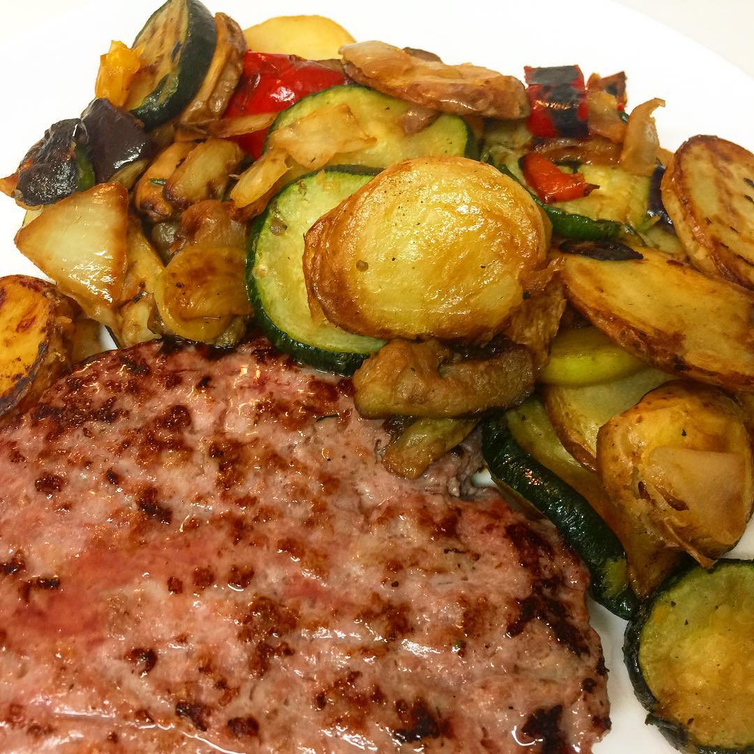 Disfruta de una jugosa hamburguesa de ternera con verduras frescas, un clásico irresistible que combina sabor y texturas. Rápida de preparar y está deliciosa.