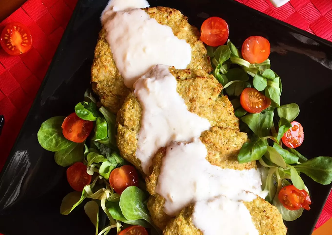 Hamburguesas de brócoli con salsa de yogur, una alternativa vegetariana llena de sabor y nutrientes. Ideales para una cena ligera, un plato saludable y sabroso.