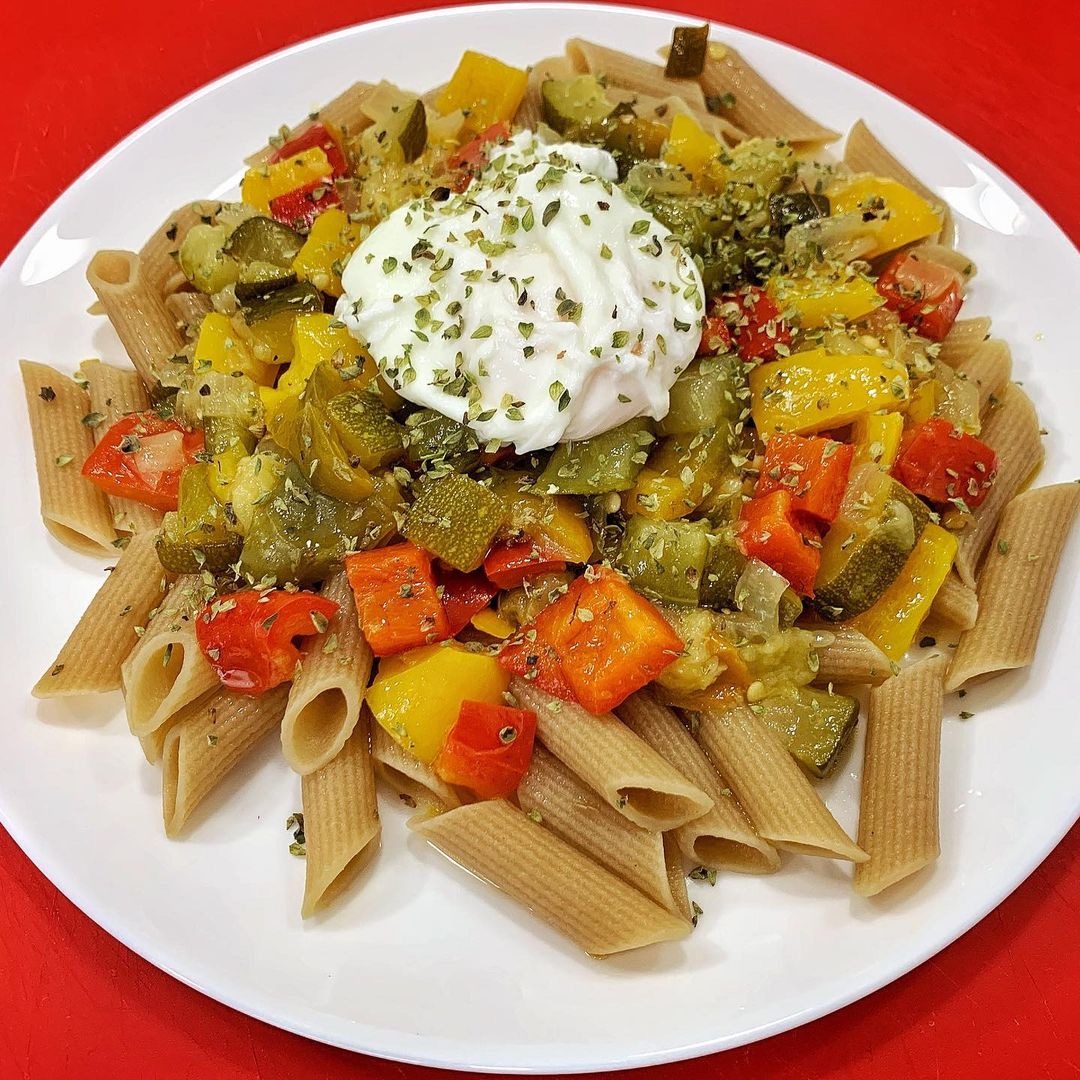 Prueba la armonía perfecta de los macarrones con pisto y huevo, una receta que balancea sabor y textura para una experiencia culinaria única. ¡Está riquísimo!