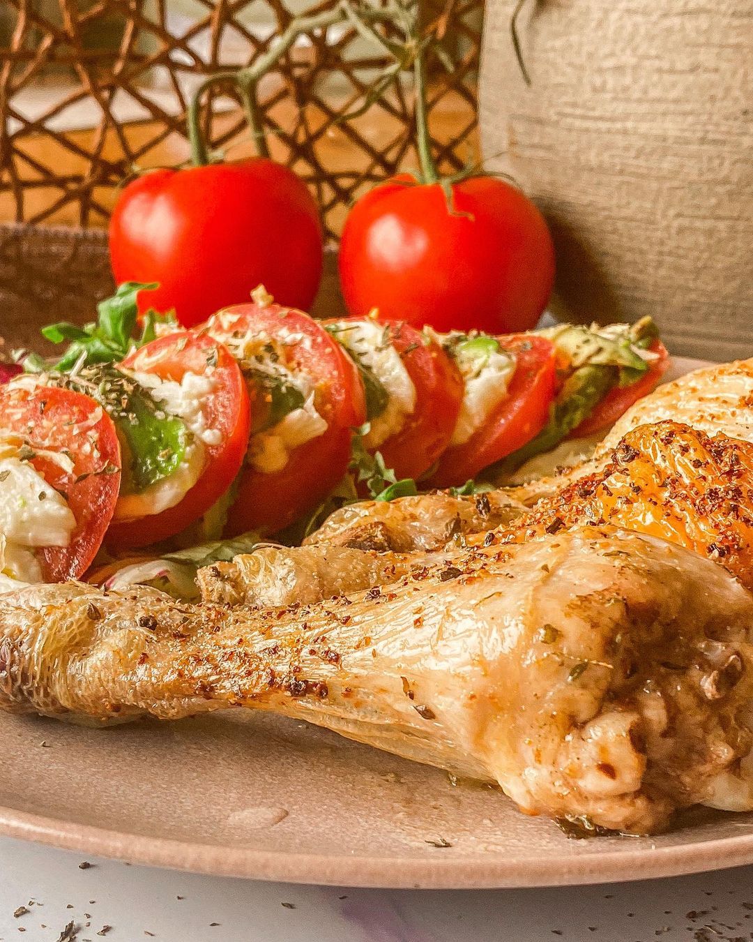 Muslos de pollo con ensalada, una combinación perfecta de proteínas y verduras. Ideal para una cena nutritiva que satisface tanto el paladar como al estómago.