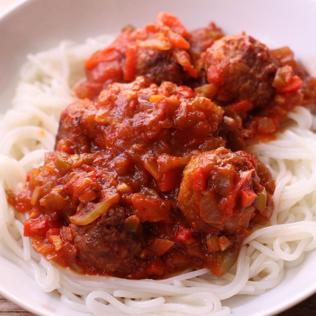 Prueba los noodles con albóndigas, donde la tradición asiática se encuentra con lo occidental. Una combinación perfecta para un plato completo y delicioso.