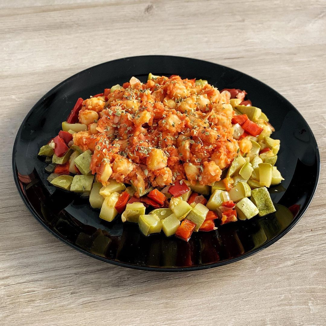 Pisto de calabacín con garbanzos.