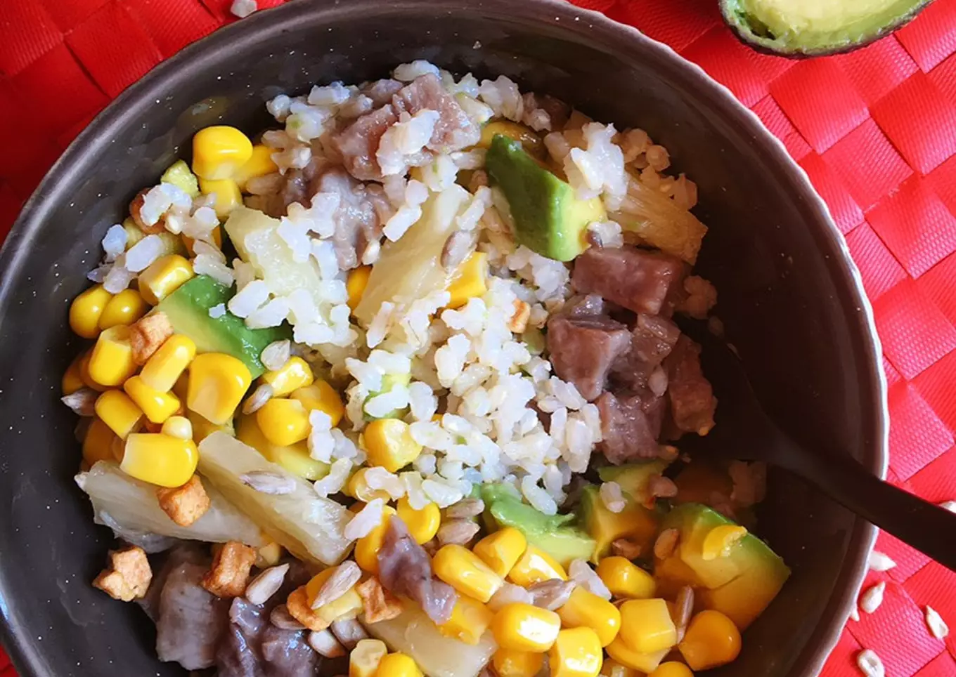 Poke de arroz integral y atún
