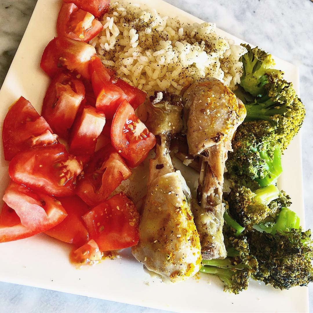 Pollo con brócoli y arroz