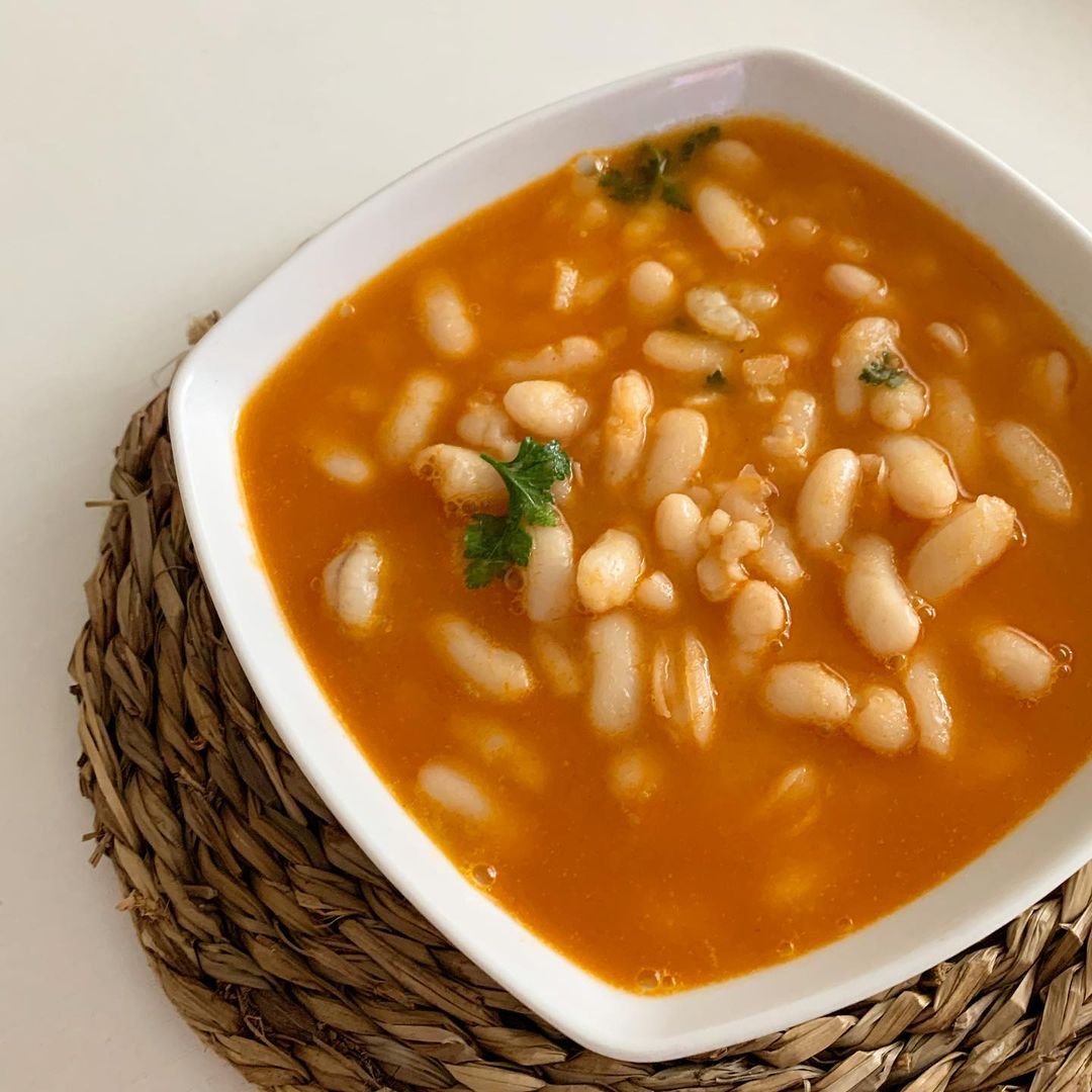 Potaje de judías blancas con gambas, donde la textura cremosa de las legumbres se une al sabor intenso del mar. ¡Una forma diferente de cocinar judías blancas!