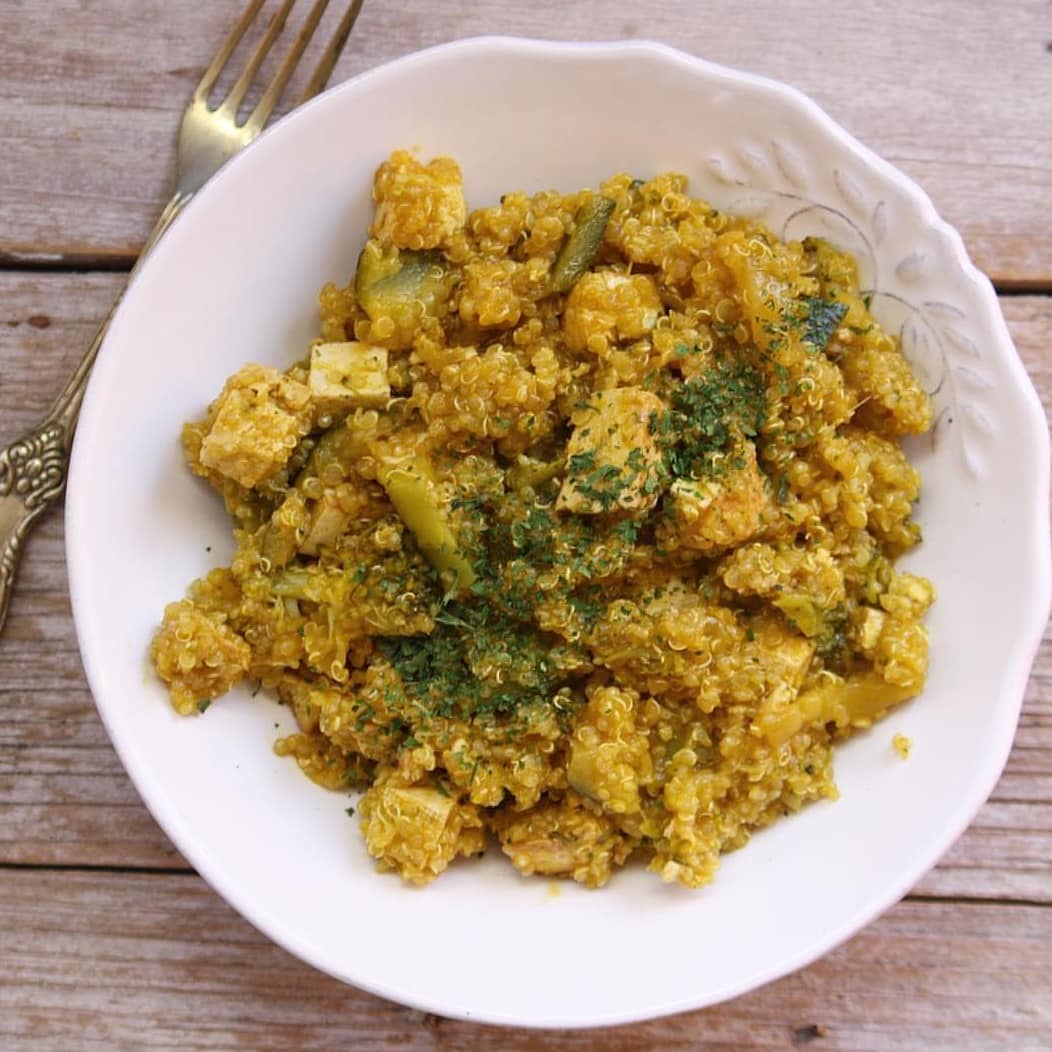 Quinoa al curry con verduras y tofu