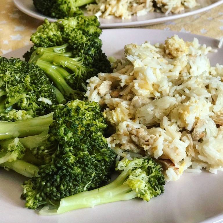 Saborea la sencillez y nutrición de un revuelto de arroz con pollo, huevo y brócoli, una comida equilibrada idoneo para reponer energías. ¡Está delicioso!