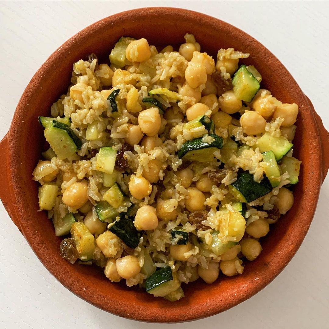 Explora los sabores de un salteado de arroz con garbanzos, una combinación ideal de carbohidratos complejos y proteínas vegetales perfecto para recargar energía