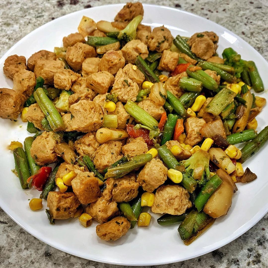 Soja texturizada con verduras, una opción saludable y sabrosa para disfrutar de proteínas vegetales en tu dieta. Un plato que no sacrifica sabor ni textura.
